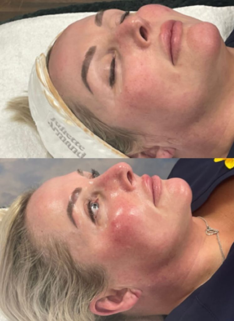 The Juliette Armande advanced skin booster Chronos ‘Filler’ facial is perfect for any client particularly those 40+ to plump skin and smooth out those fine lines and wrinkles. The treatment involves a peeling system, Hydra systrm, Anti-Ageing system and an Antioxidant system. This treatment has no downtime so you can walk out of the clinic looking refreshed, rejuvenated and younger! The treatment also includes a massage technique that works at breaking down tension and knots in the face. A course is recommended, and optional homecare is available to further enhance results, which  can be seen instantly.