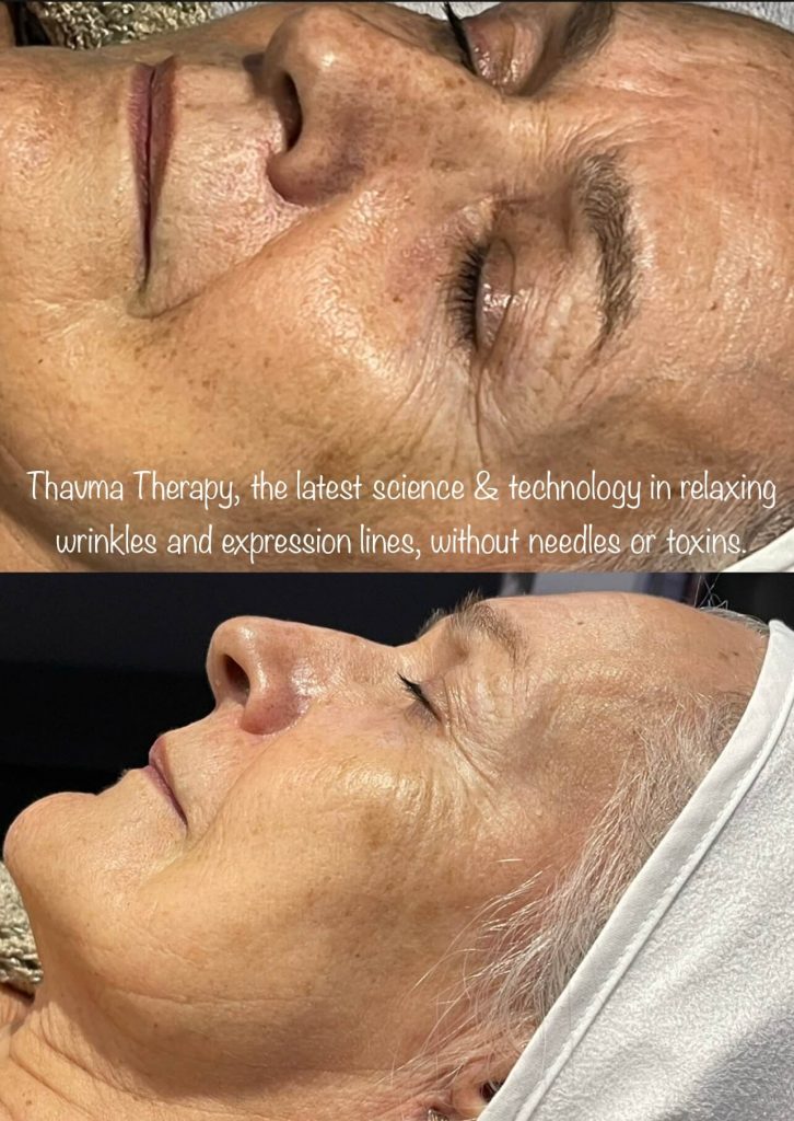 The Thavma facial uses Effectox technology combined with drone formulation in the professional products to inhibit expression lines, reduces loose skin formation and preserve its water balance. Perfect for clients in their 20’s, 30’s and 40’s reduces expression lines. lightens hyper-pigmentation, reduces pores size and treats dull skin. A course  is recommended, and optional homecare is available to further enhance results,  which can be seen instantly.